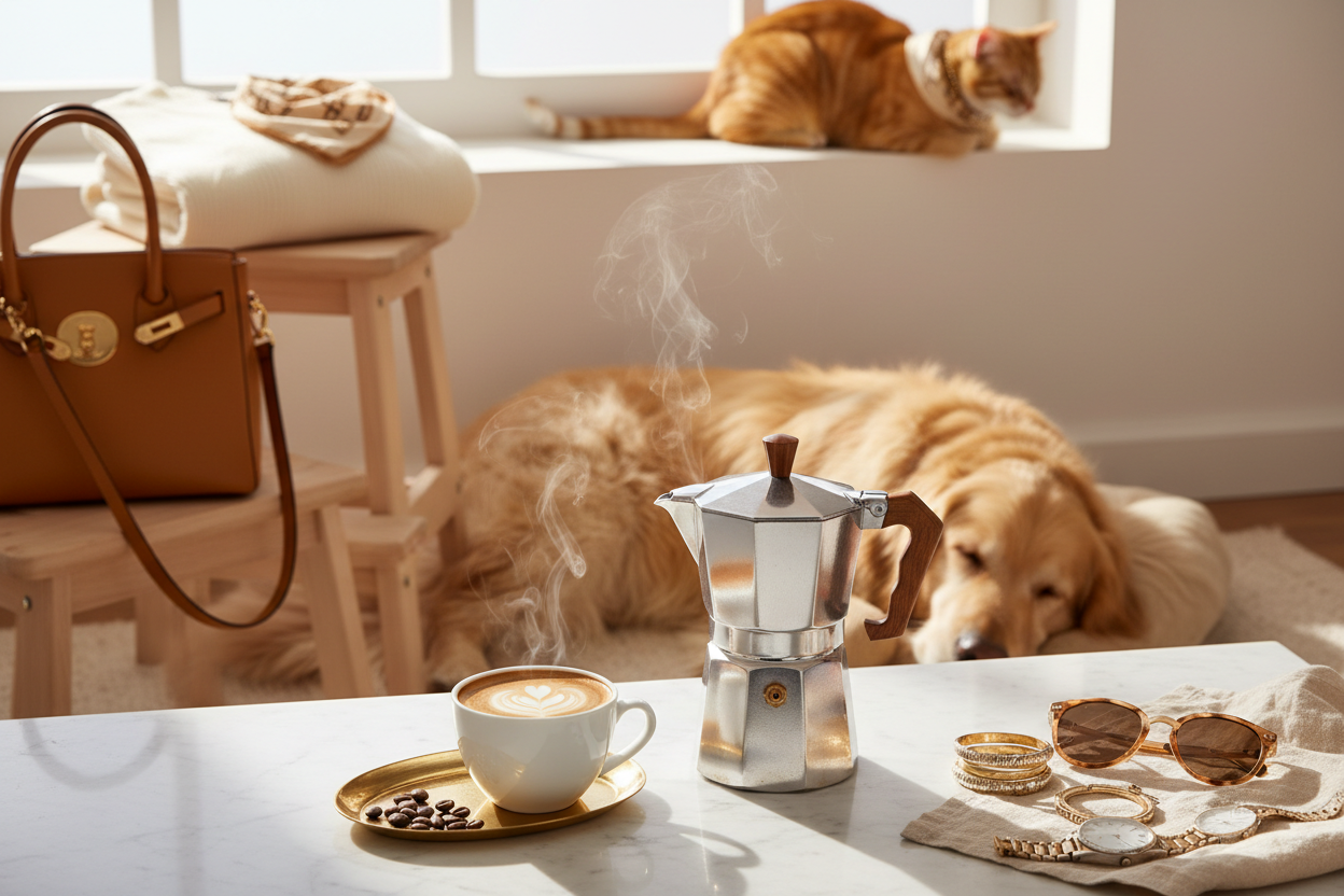 We believe the best days start with a great cup of coffee and the perfect outfit. Whether you're brewing a fresh stovetop espresso, upgrading your wardrobe, or picking out a stylish new look for your dog or cat, you'll find your daily essentials right here